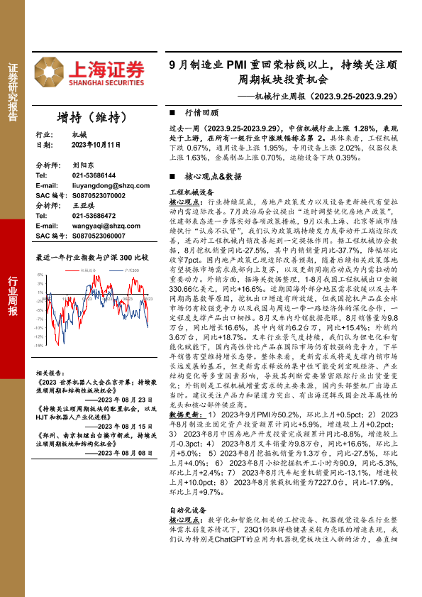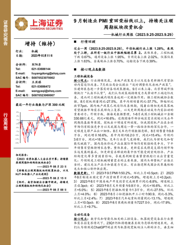 【上海证券】【20231011】20231011-上海证券-机械行业周报:9月制造业PMI重回荣枯线以上,持续关注顺周期板块投资机会-20页