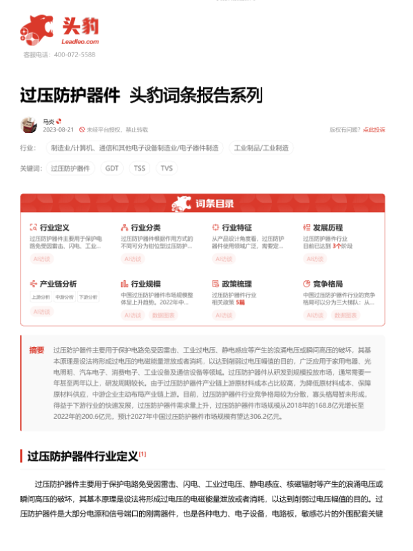 【头豹研究院】【20230821】过压防护器件 头豹词条报告系列-16页