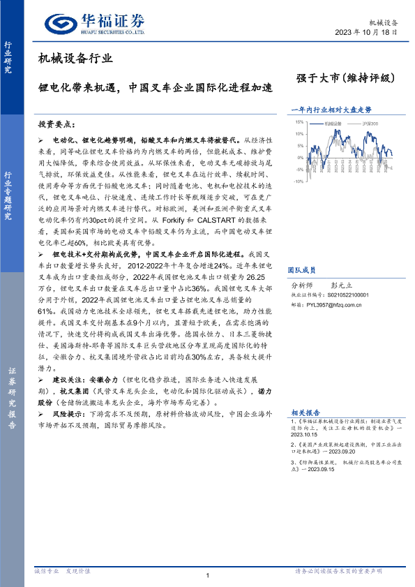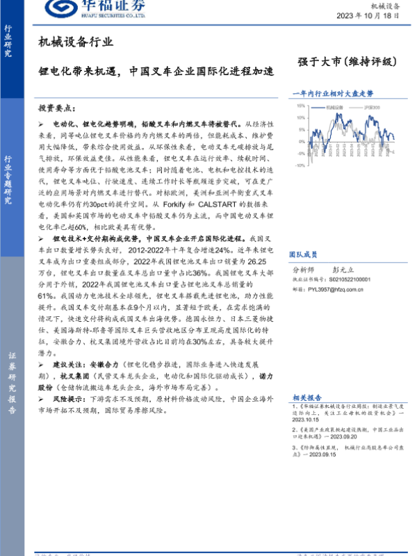 【华福证券】【20231018】机械设备行业:锂电化带来机遇,中国叉车企业国际化进程加速-16页