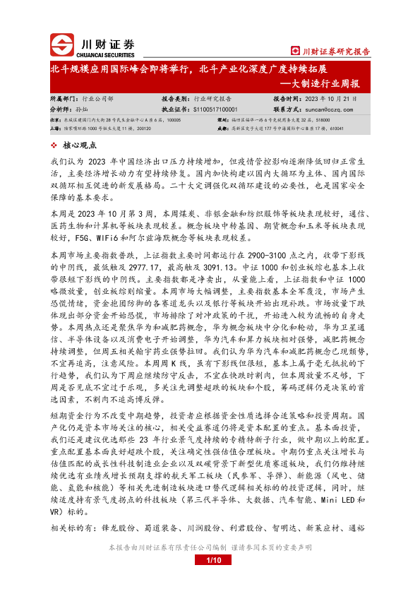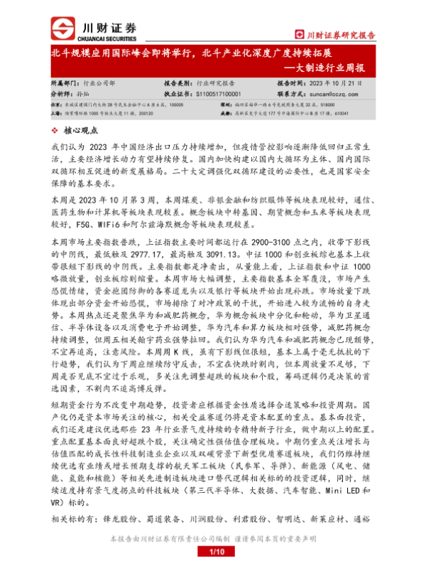 【川财证券】【20231021】20231021-川财证券-大制造行业周报:北斗规模应用国际峰会即将举行,北斗产业化深度广度持续拓展-10页