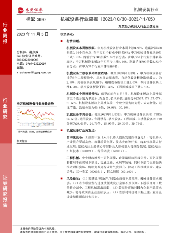 【东莞证券】【20231105】机械设备行业周报:政策助力机器人行业加速发展-11页
