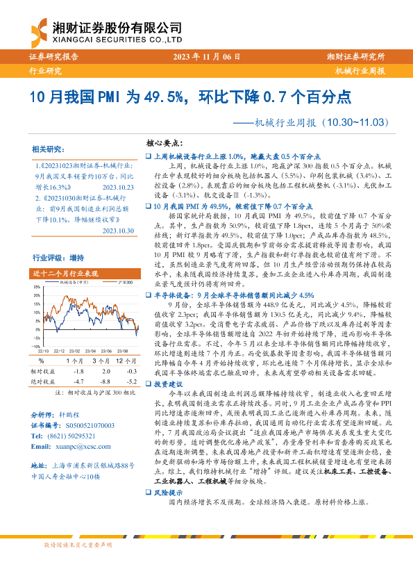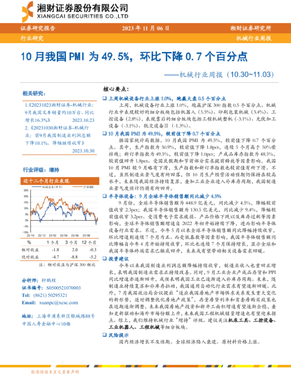 【湘财证券】【20231106】20231106-湘财证券-机械行业周报:10月我国PMI为49.5%,环比下降0.7个百分点-13页