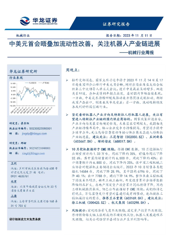 【华龙证券】【20231111】20231111-华龙证券-机械行业周报:中美元首会晤叠加流动性改善,关注机器人产业链进展-12页