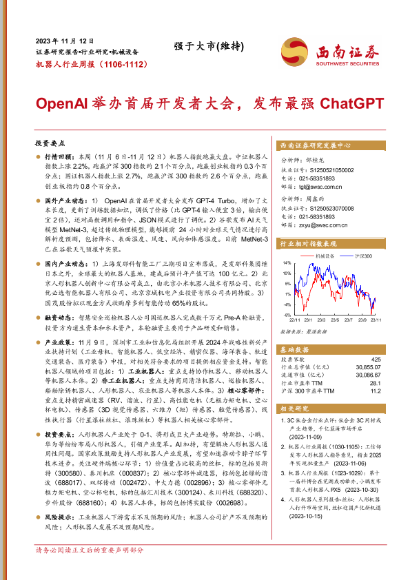 【西南证券】【20231112】20231112-西南证券-机器人行业周报:OpenAI举办首届开发者大会,发布最强ChatGPT-11页