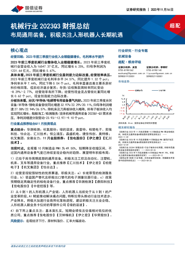 【国信证券】【20231116】机械行业2023Q3财报总结:布局通用装备,积极关注人形机器人长期机遇-18页