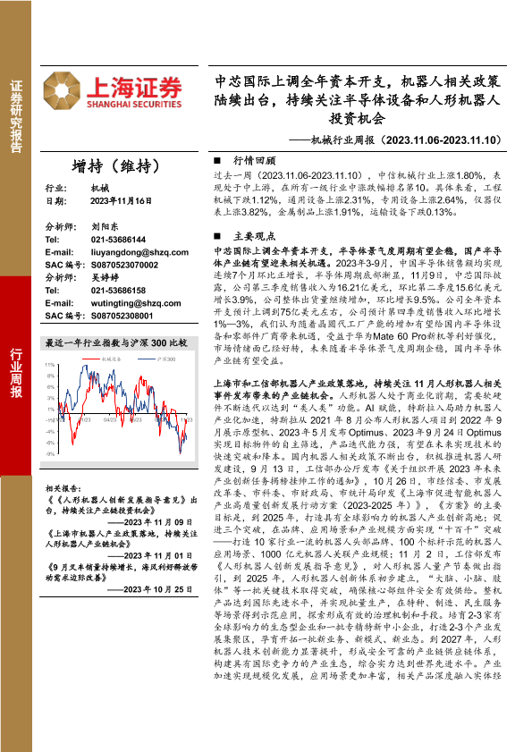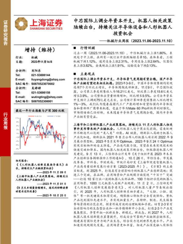 【上海证券】【20231116】20231116-上海证券-机械行业周报:中芯国际上调全年资本开支,机器人相关政策陆续出台,持续关注半导体设备和人形机器人投资机会-19页