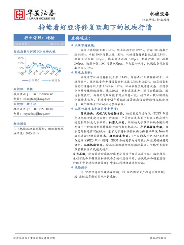 【华安证券】【20231120】20231120-华安证券-机械设备行业周报:持续看好经济修复预期下的板块行情-12页
