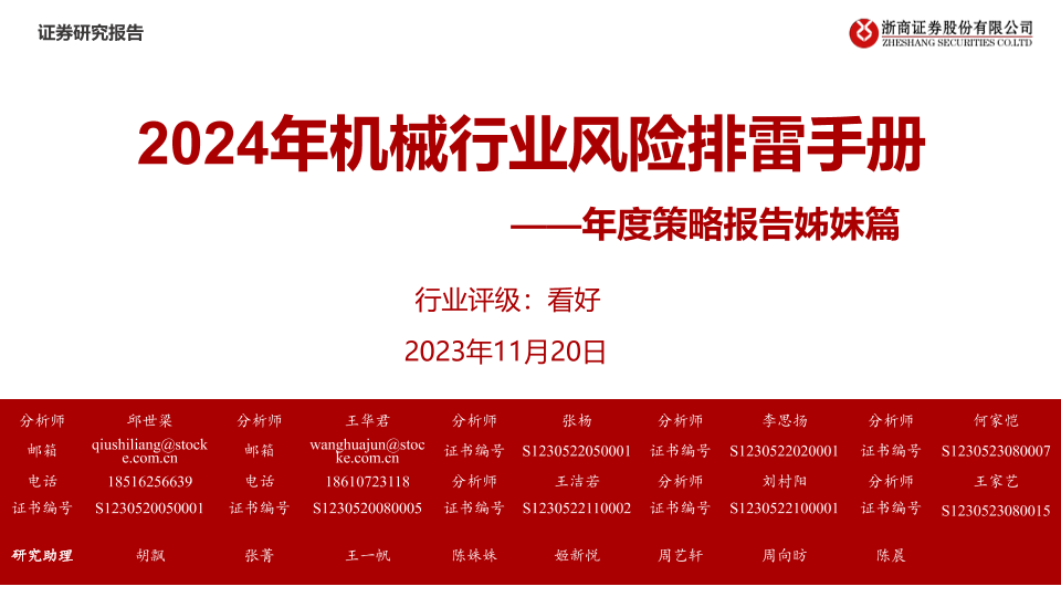 【浙商证券】【20231120】2024年机械行业风险排雷手册:年度策略报告姊妹篇-31页