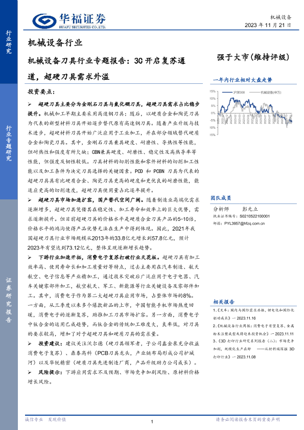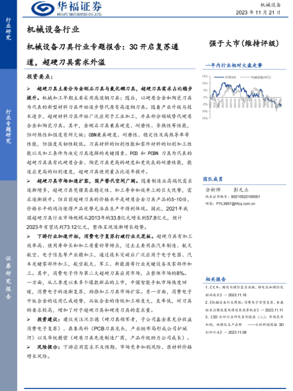 【华福证券】【20231121】机械设备刀具行业专题报告:3C开启复苏通道,超硬刀具需求外溢-21页