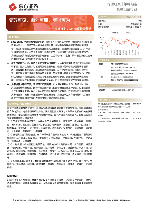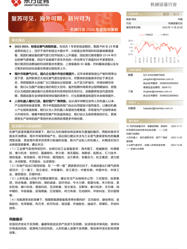 【东方证券】【20231122】机械行业2024年度投资策略:复苏可见,海外可期,新兴可为-25页