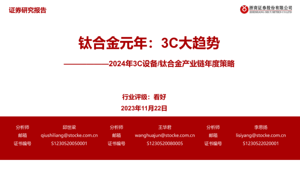 【浙商证券】【20231122】2024年3C设备/钛合金产业链年度策略:钛合金元年:3C大趋势-38页