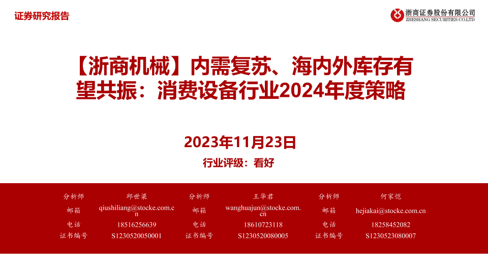 【浙商证券】【20231123】内需复苏、海内外库存有望共振:消费设备行业2024年度策略-46页
