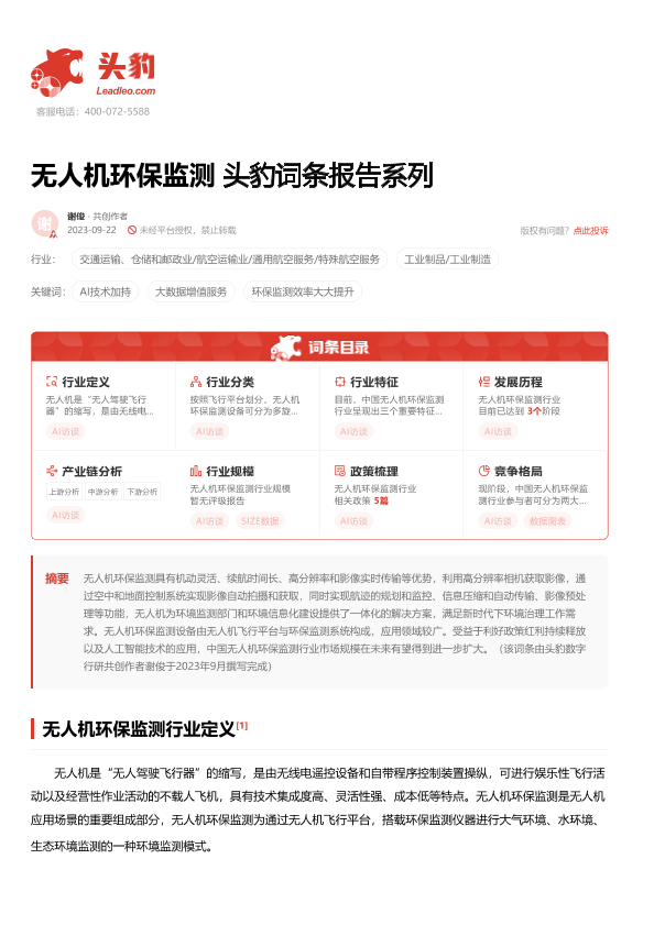 【头豹研究院】【20230922】无人机环保监测 头豹词条报告系列-16页