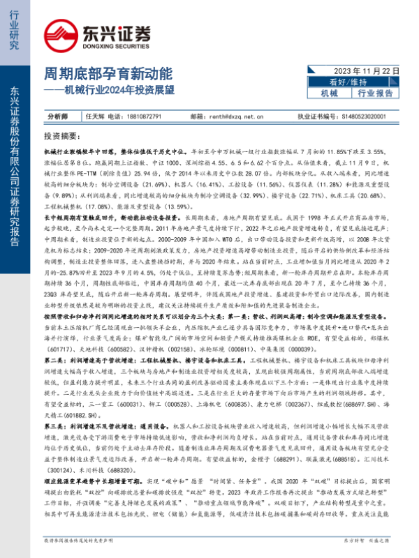 【东兴证券】【20231122】机械行业2024年投资展望:周期底部孕育新动能-55页