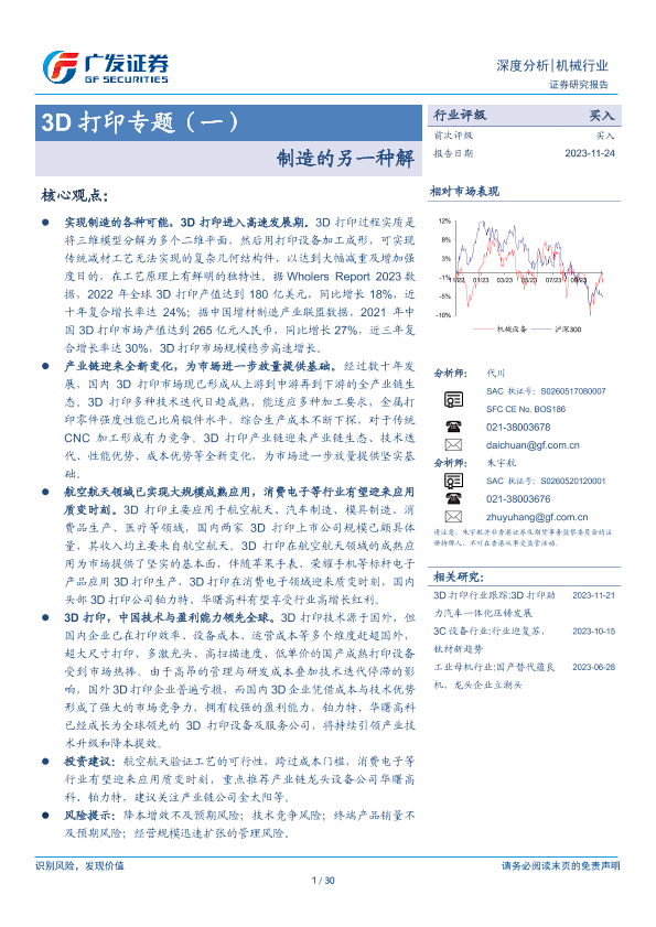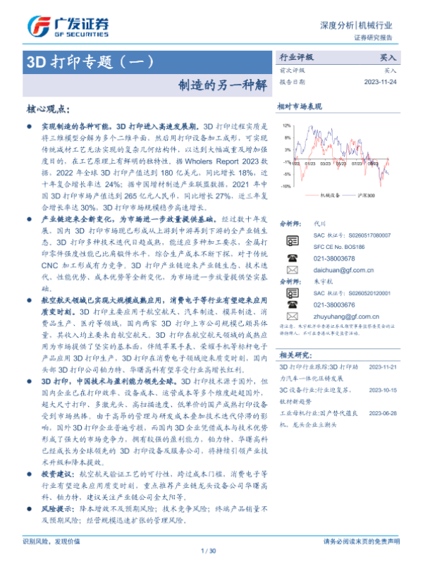 【广发证券】【20231124】3D打印专题(一):制造的另一种解-30页