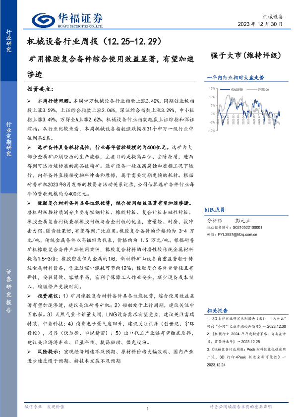 【华福证券】【20231230】20231230-华福证券-机械设备行业周报:矿用橡胶复合备件综合使用效益显著,有望加速渗透-15页