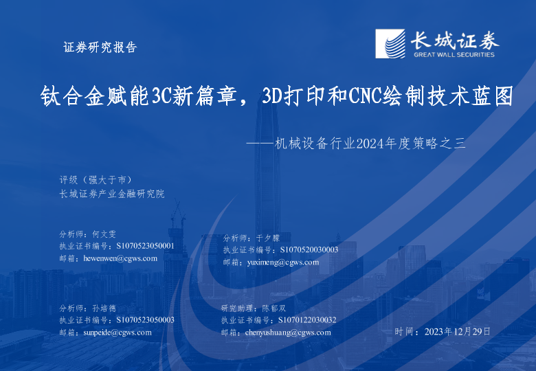 【长城证券】【20231229】钛合金赋能3C新篇章,3D打印和CNC绘制技术蓝图-47页