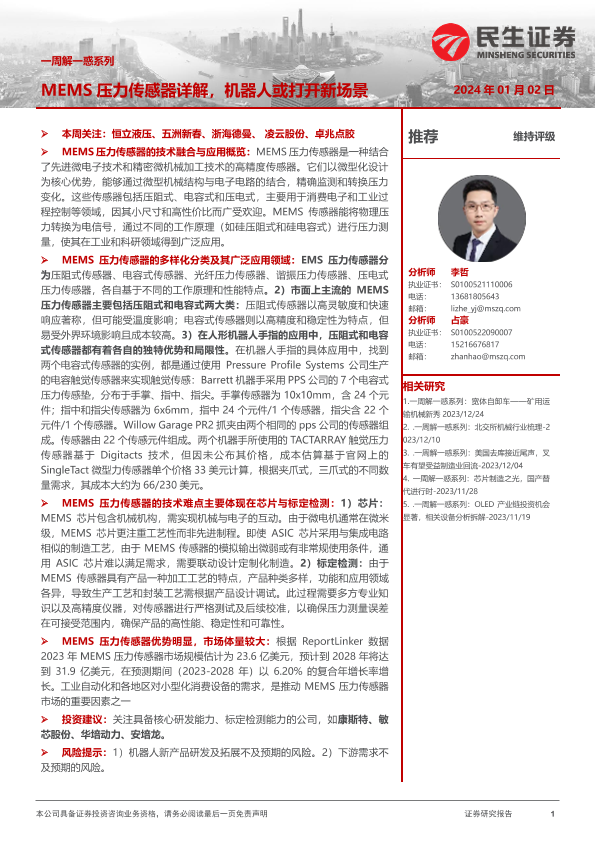 【民生证券】【20240102】一周解一惑系列:MEMS压力传感器详解,机器人或打开新场景-23页