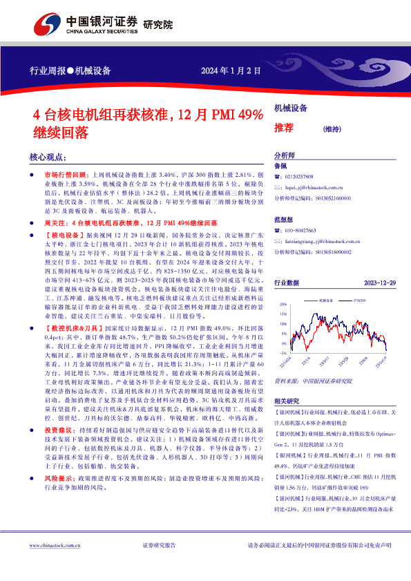 【银河证券】【20240102】20240102-中国银河-机械设备行业周报:4台核电机组再获核准,12月PMI49%继续回落-20页