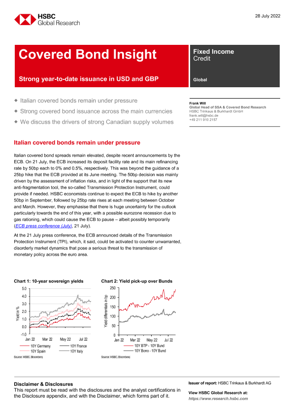 【HSBC Trinkaus&Burkhardt AG】【20220728】HSBC-Covered Bond Insight Strong year-to-date issuance in USD and GBP-13页