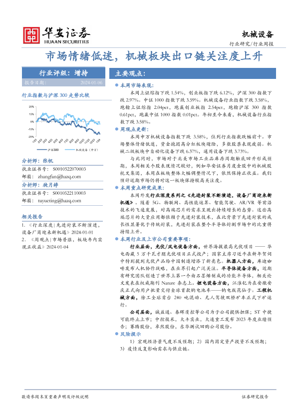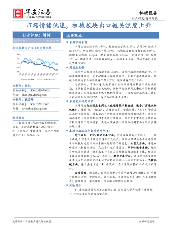 【华安证券】【20240106】20240106-华安证券-机械设备行业周报:市场情绪低迷,机械板块出口链关注度上升-14页