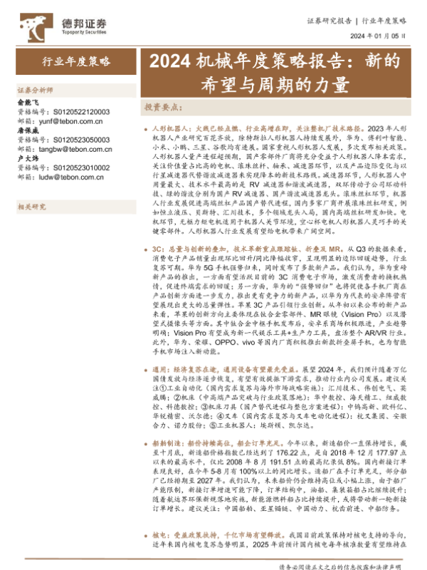 【德邦证券】【20240105】2024机械年度策略报告:新的希望与周期的力量-93页