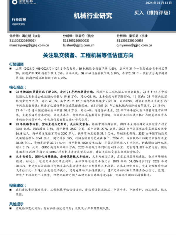 【国金证券】【20240113】20240113-国金证券-机械行业研究:关注轨交装备、工程机械等低估值方向-17页