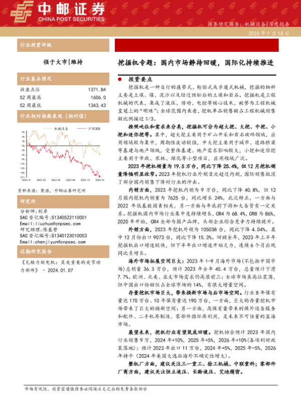 【中邮证券】【20240114】20240114-中邮证券-挖掘机专题:国内市场静待回暖,国际化持续推进-19页