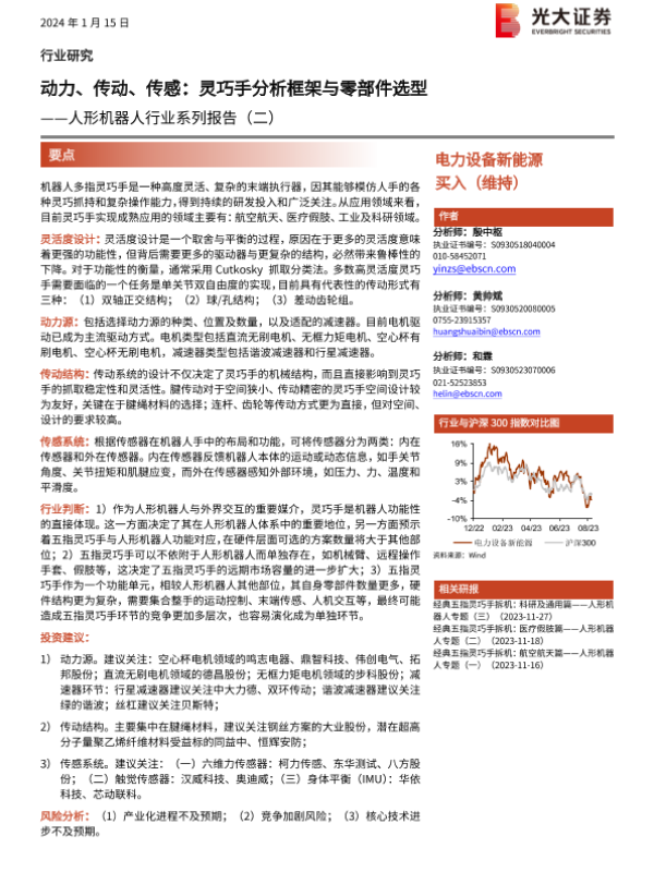 【光大证券】【20240115】动力、传动、传感:灵巧手分析框架与零部件选型——人形机器人行业系列报告(二)-41页