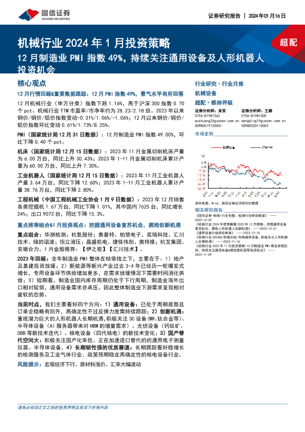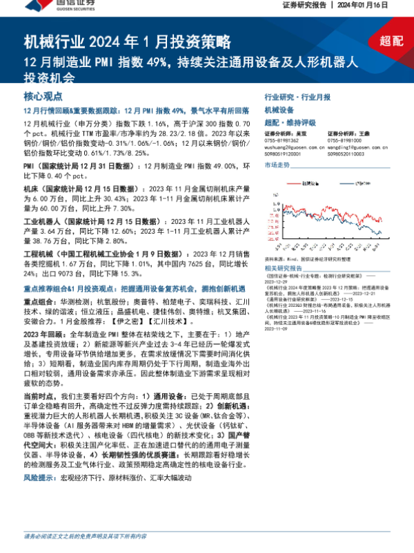 【国信证券】【20240116】机械行业2024年1月投资策略:12月制造业PMI指数49%,持续关注通用设备及人形机器人投资机会-23页