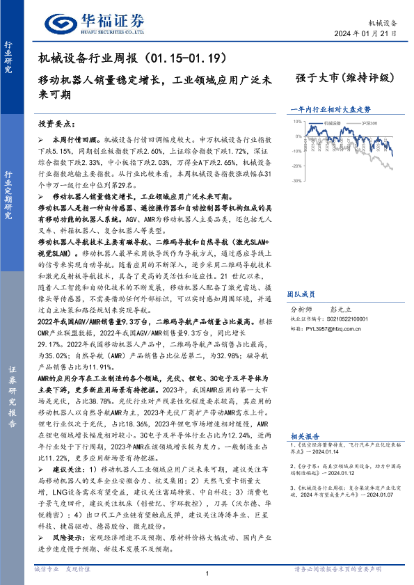 【华福证券】【20240121】20240121-华福证券-机械设备行业周报:移动机器人销量稳定增长,工业领域应用广泛未来可期-14页