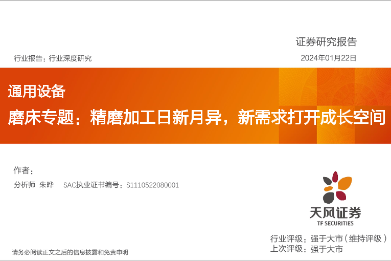 【天风证券】【20240122】通用设备行业深度研究:磨床专题:精磨加工日新月异,新需求打开成长空间-43页