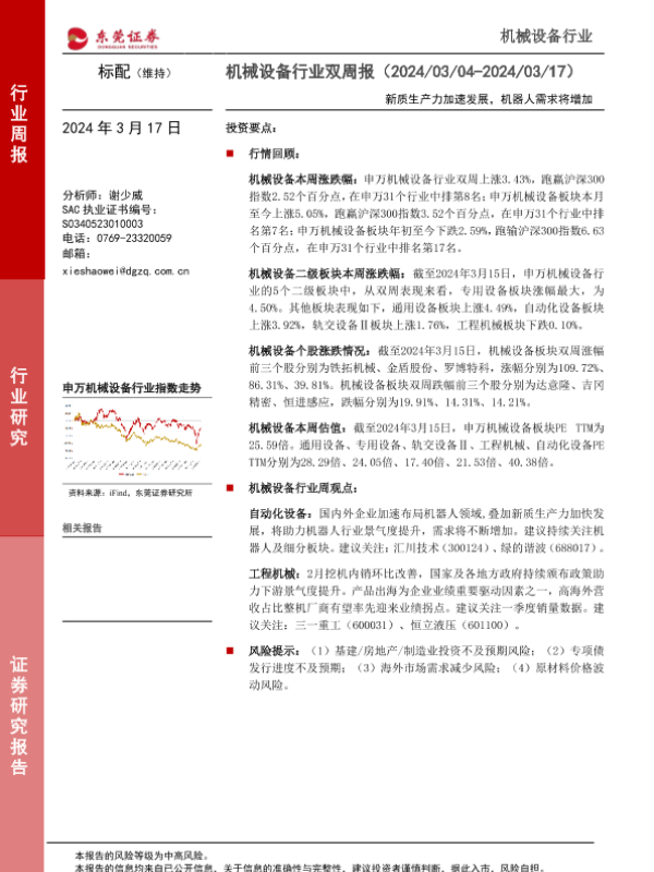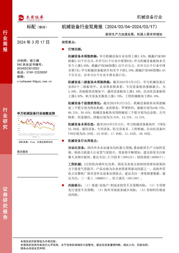 【东莞证券】【20240317】20240317-东莞证券-机械设备行业双周报:新质生产力加速发展,机器人需求将增加-12页