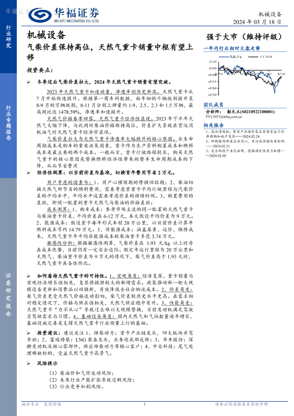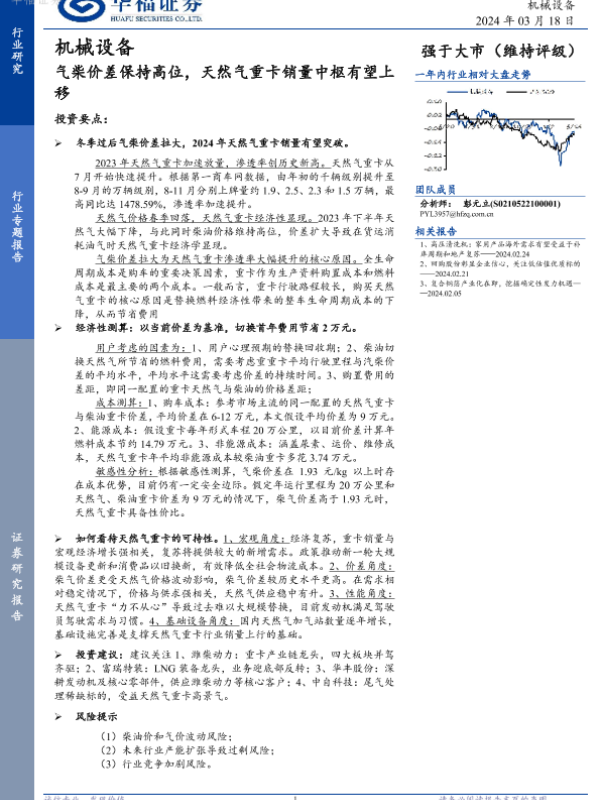【华福证券】【20240318】机械设备:气柴价差保持高位,天然气重卡销量中枢有望上移-22页