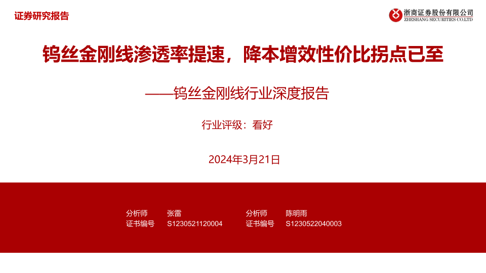 【浙商证券】【20240321】钨丝金刚线渗透率提速,降本增效性价比拐点已至-36页