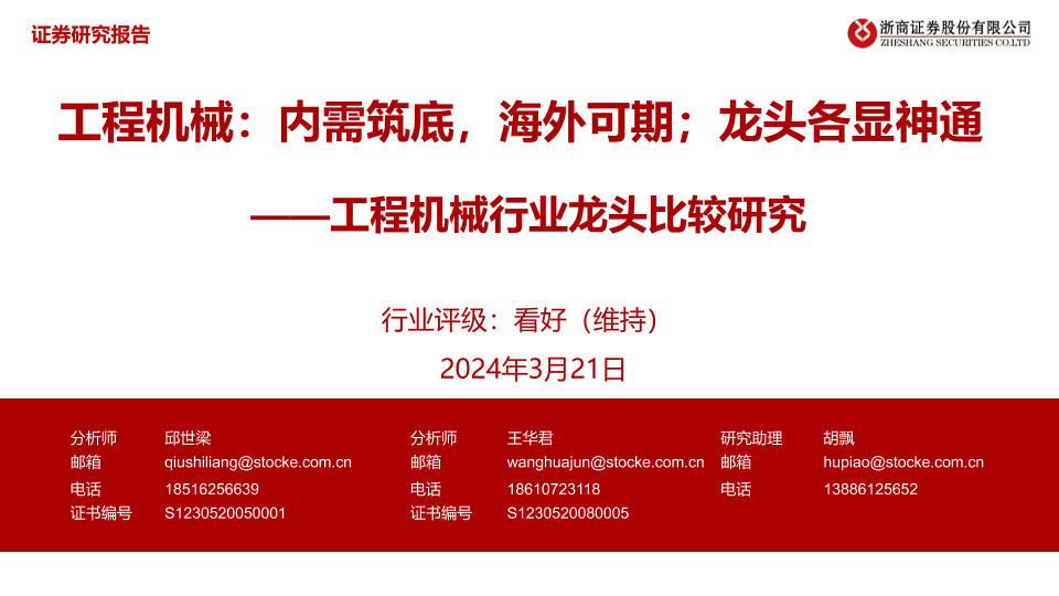 【浙商证券】【20240321】工程机械:内需筑底,海外可期;龙头各显神通-41页