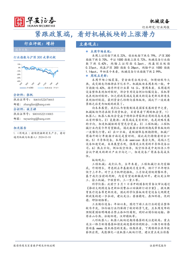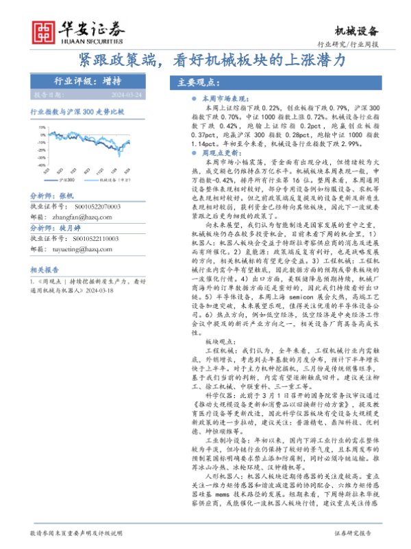 【华安证券】【20240324】20240324-华安证券-机械设备行业周报:紧跟政策端,看好机械板块的上涨潜力-14页