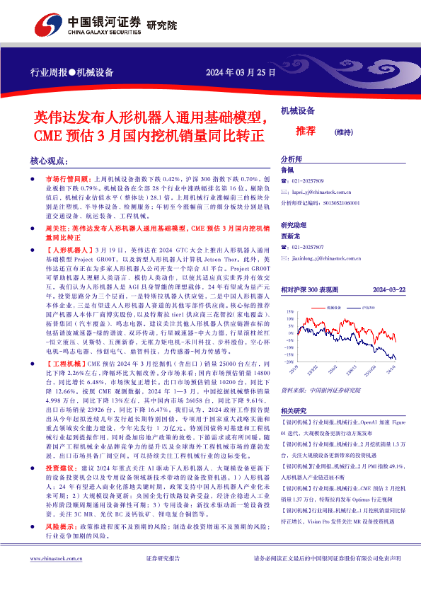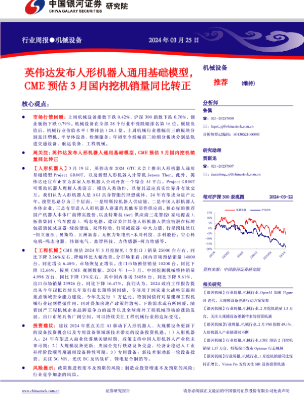 【银河证券】【20240325】20240325-中国银河-机械设备行业周报:英伟达发布人形机器人通用基础模型,CME预估3月国内挖机销量同比转正-20页