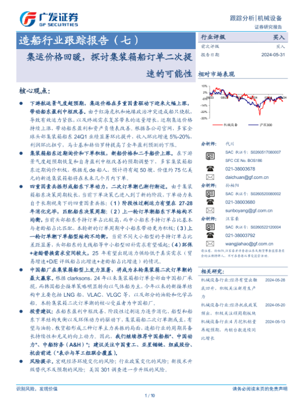 【广发证券】【20240531】20240531-广发证券-造船行业跟踪报告(七):集运价格回暖,探讨集装箱船订单二次提速的可能性-10页