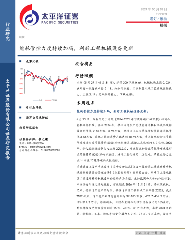 【太平洋证券】【20240602】20240602-太平洋-机械行业周报:能耗管控力度持续加码,利好工程机械设备更新-16页