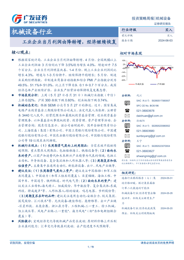 【广发证券】【20240603】20240603-广发证券-机械设备行业投资策略周报:工业企业当月利润由降转增,经济继续恢复-19页