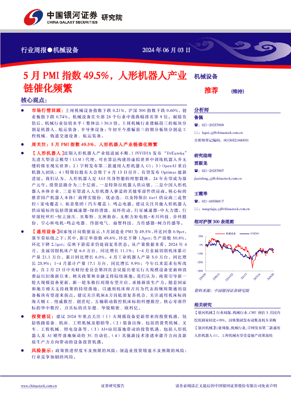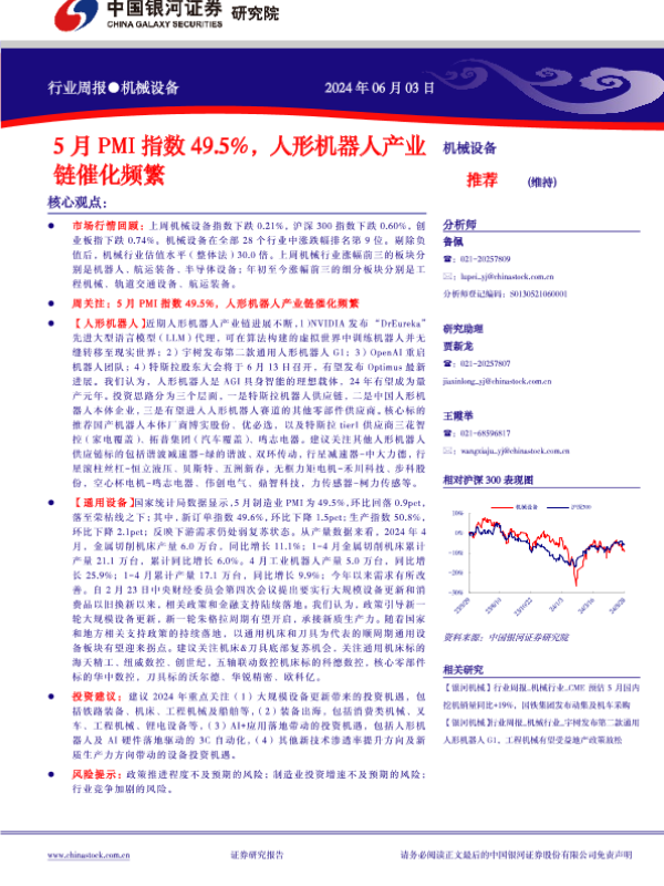 【银河证券】【20240603】20240603-中国银河-机械设备行业周报:5月PMI指数49.5%,人形机器人产业链催化频繁-12页
