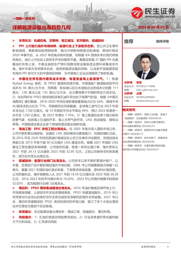 【民生证券】【20240602】20240602-民生证券-机械一周解一惑系列:详解能源设备出海趋势几何-26页