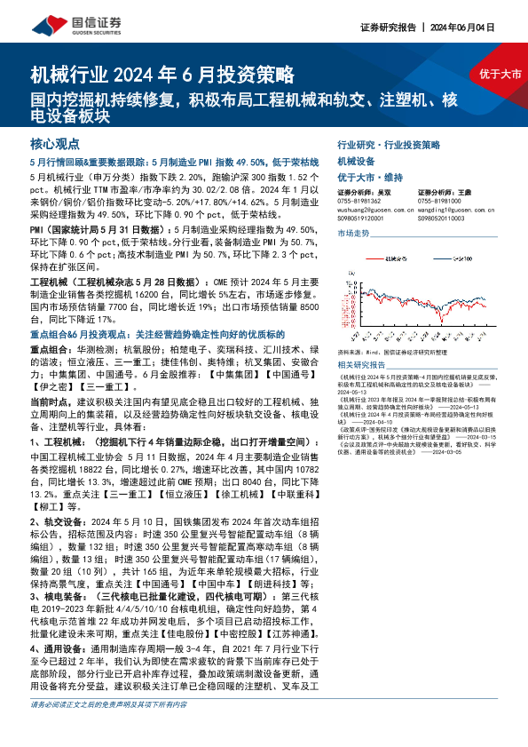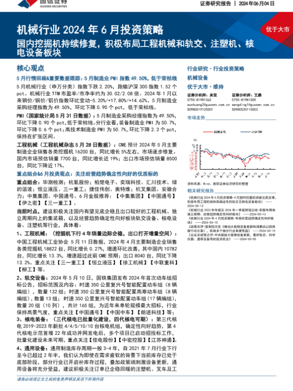 【国信证券】【20240604】2024年6月投资策略:国内挖掘机持续修复,积极布局工程机械和轨交、注塑机、核电设备板块-23页
