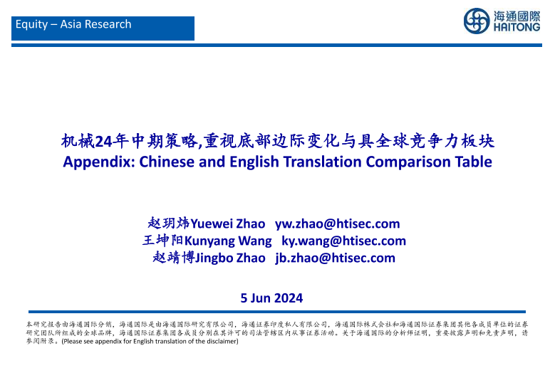【海通国际】【20240605】20240605-海通国际-机械24年中期策略,重视底部边际变化与具全球竞争力板块-51页
