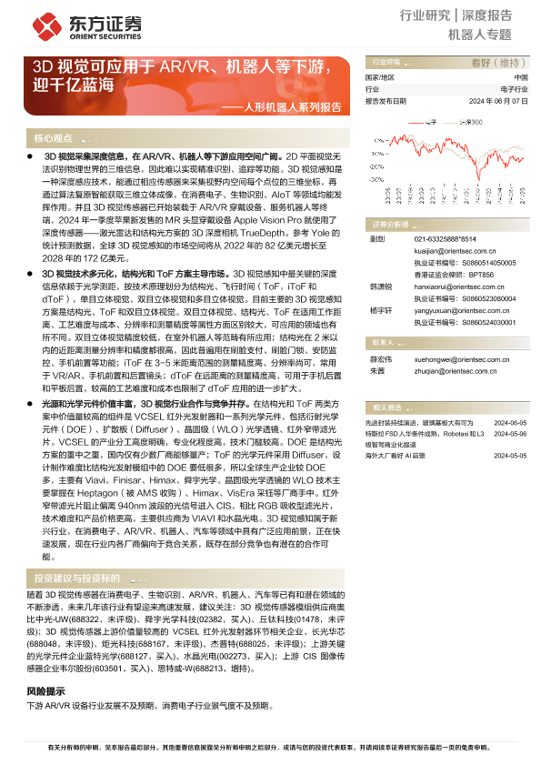 【东方证券】【20240607】人形机器人系列报告:3D视觉可应用于AR VR、机器人等下游,迎千亿蓝海-22页