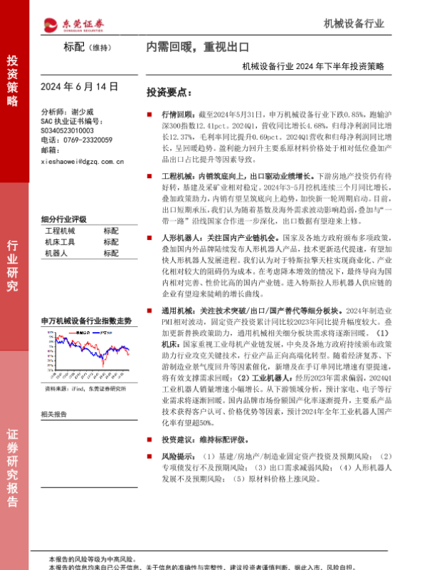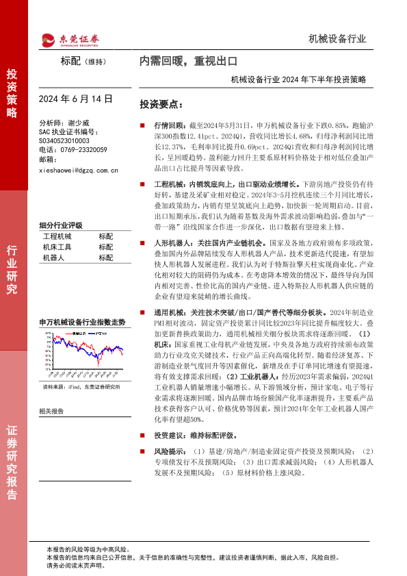 【东莞证券】【20240614】机械设备行业2024年下半年投资策略:内需回暖,重视出口-23页