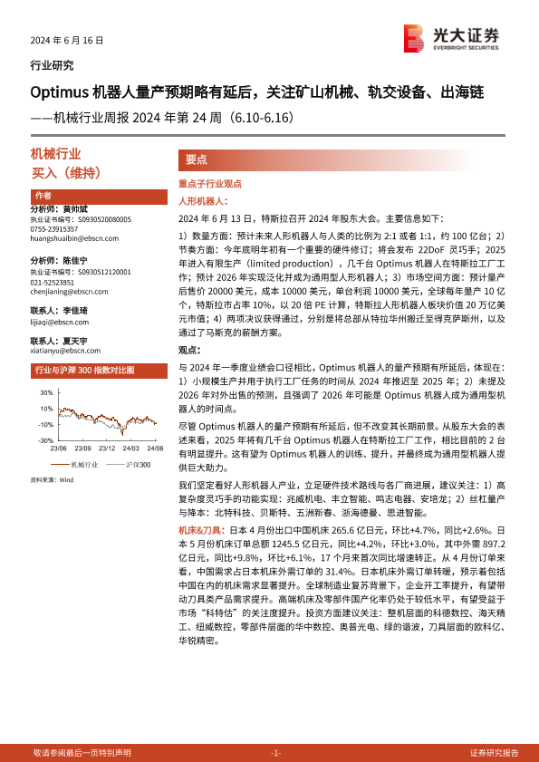 【光大证券】【20240616】机械行业周报2024年第24周:Optimus机器人量产预期略有延后,关注矿山机械、轨交设备、出海链-11页