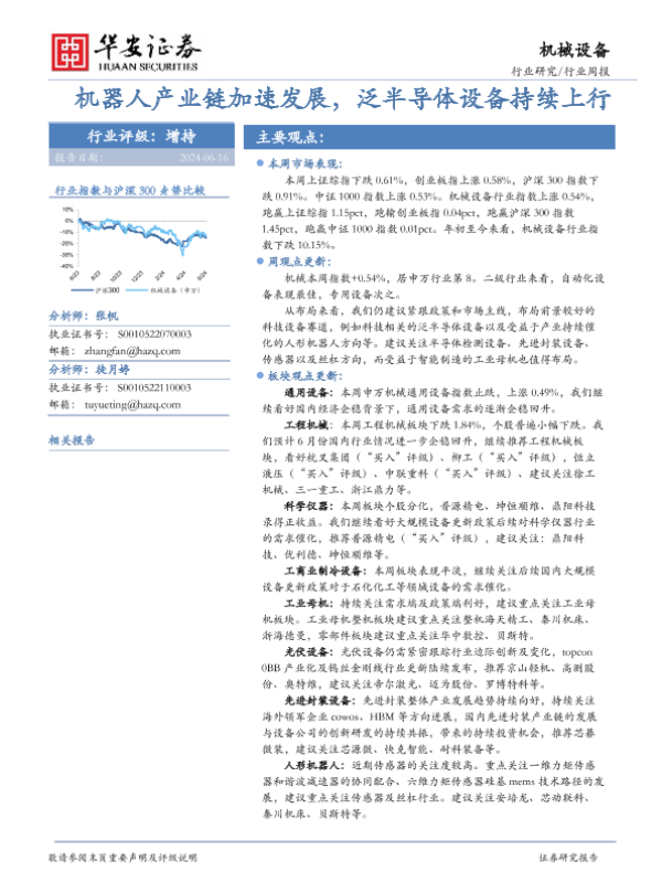 【华安证券】【20240616】20240616-华安证券-机械设备行业周报:机器人产业链加速发展,泛半导体设备持续上行-16页