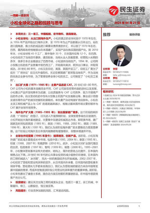 【民生证券】【20240623】机械一周解一惑系列:小松全球化之路的回顾与思考-15页